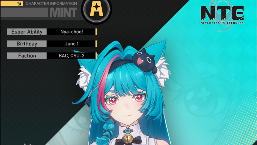 Mint is a free A-class Anima character and works as the main DPS. She is obtained through story progression, meaning you unlock her naturally as you play through the main storyline quests. Mint is the poster character for Neverness to Everness and appears prominently in promotional materials.